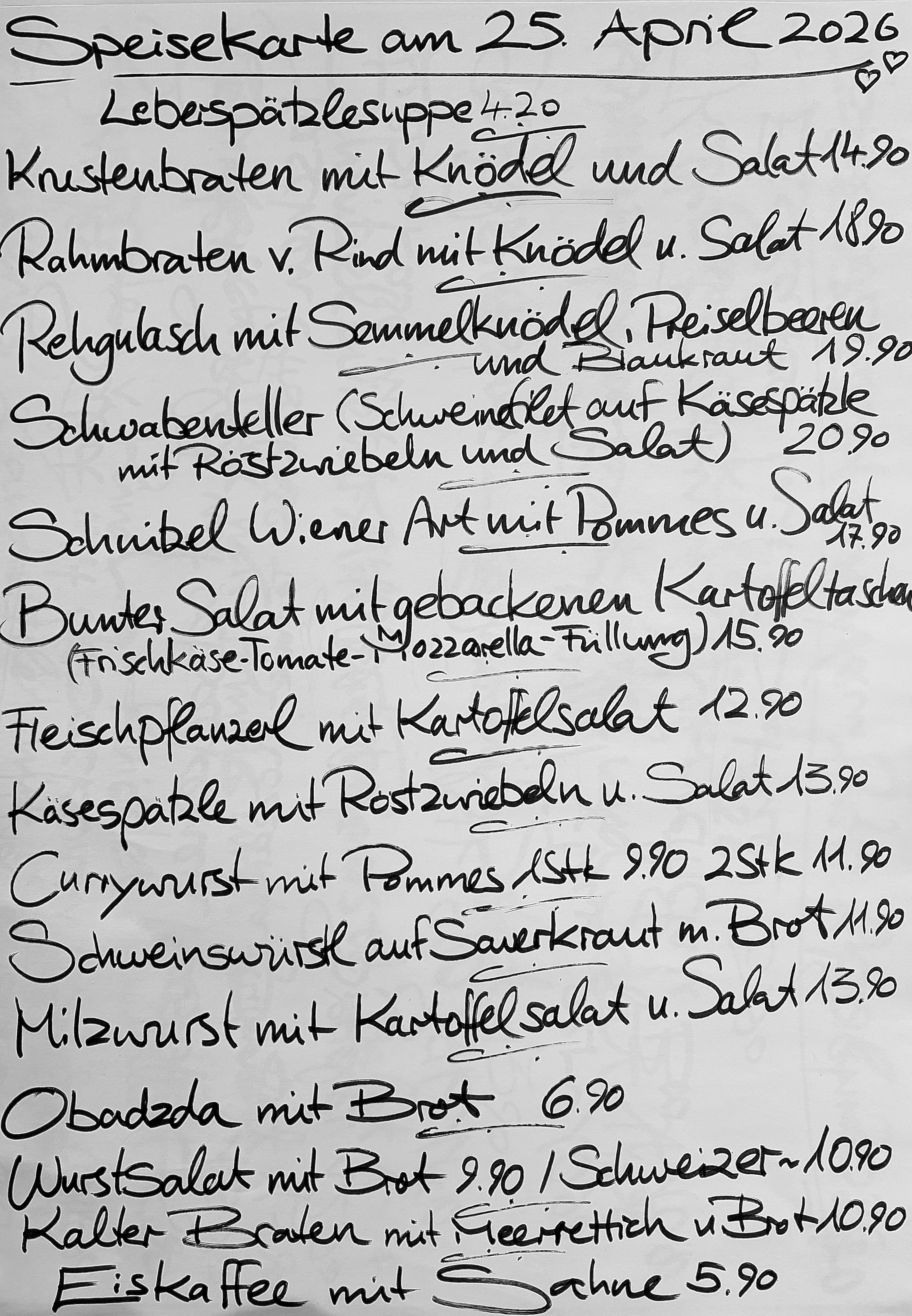 Der Tradition dieser Gastwirtschaft, die im Familienbetrieb geführt wird, fühlen wir uns verpflichtet. Seit jeher steht bei uns der zufriedene Gast im Vordergrund und wird mit freundlichem Service und gutbürgerlich-bayerischer Küche verwöhnt.